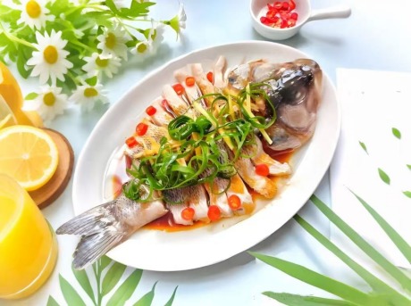 丝瓜蒸鲈鱼(悦海楼精致菜品)鱼类 / 招牌特色